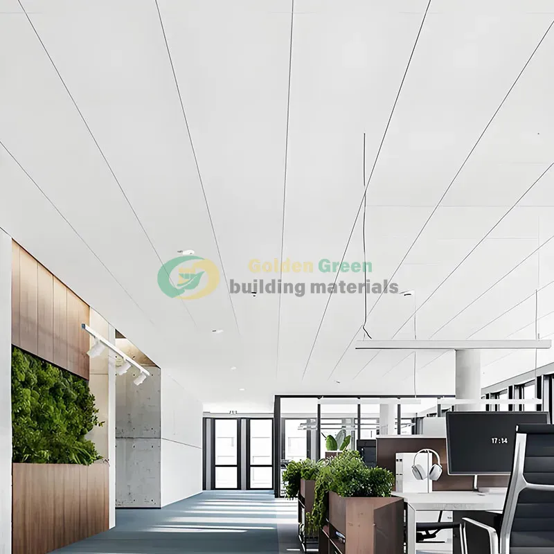 The Golden Green Beyond Hidden Plug Glass Fiber Board is a revolutionary ceiling material that combines an innovative installation system with premium acoustic performance.